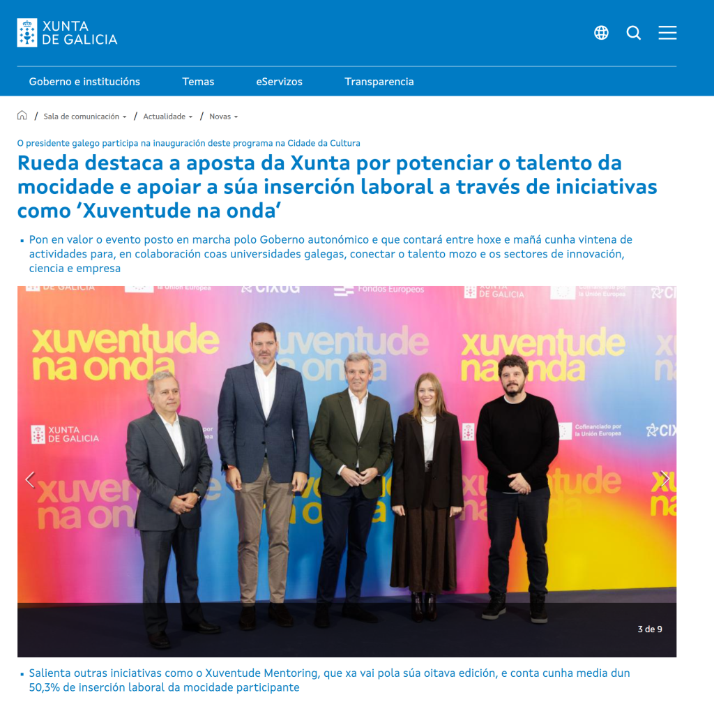 ''Rueda destaca a aposta da Xunta por potenciar o talento da mocidade e apoiar a súa inserción laboral a través de iniciativas como ‘Xuventude na onda’'