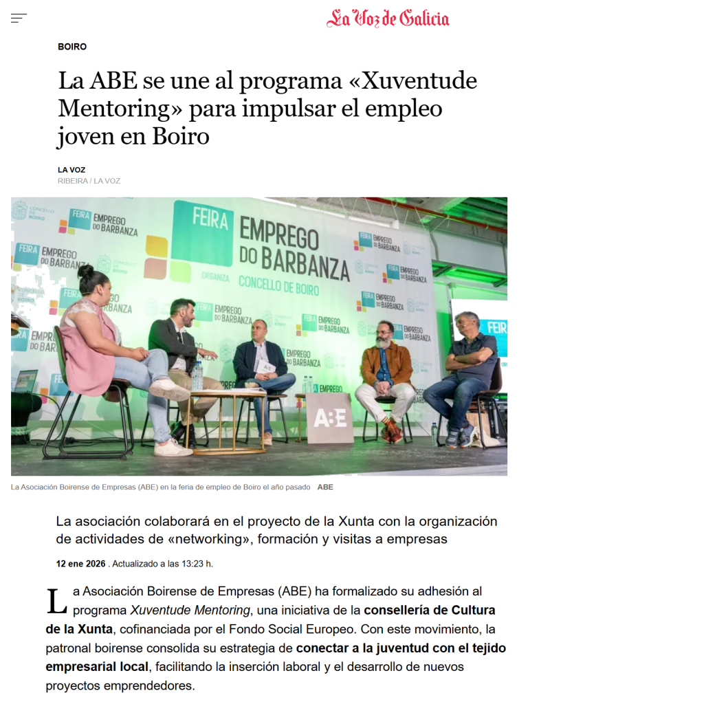 ''La ABE se une al programa «Xuventude Mentoring» para impulsar el empleo joven en Boiro’'