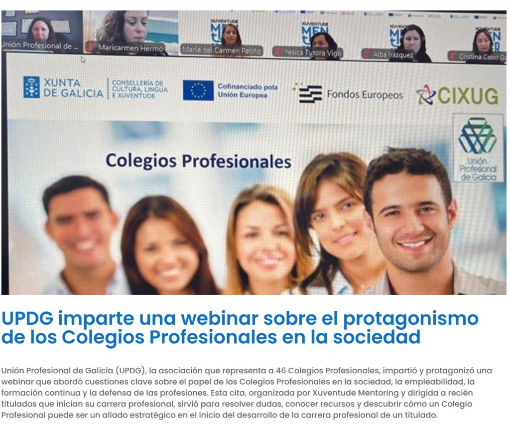 Webinar: Os Colexios Profesionais e o seu Rol no Inicio da Carreira Profesional